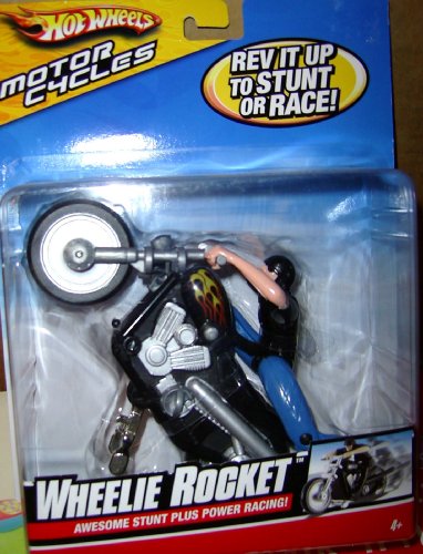 Buy Hot Wheels N4304 Hot Wheels Motor Cycles Wheelie Rocket Stunt and Power Racing Cycle Jet Black with Flame Design Today
