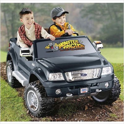The F-150 maintains today's trend in trucks with chrome accents, light buckets, clear lenses, hot-foiled badges, and high-quality finishing and detail. Truck comes equipped with Ultimate Terrain traction tire package. Requires 4 "C" batteries, not included; plus one 12-volt battery, included. Measures 62"L x 35"W x 28"H. Holds two children up to 130 pounds total. Adult supervision recommended. Assembly required.